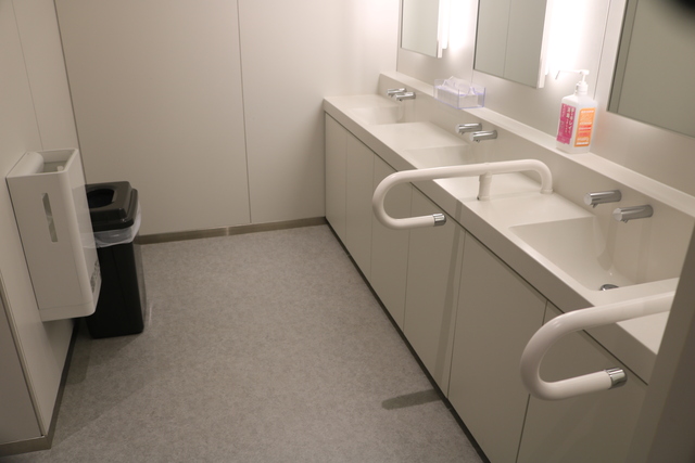 トイレは1Fオフィスフロア玄関右手(バリアフリートイレ1室のみ、制限区域外)及び2F金融資料室に設置されているのですが、何れも窓口休業日は閉鎖されるものと思われます 付帯設備としてはベビーベッド(1Fには無かったかも)、オストメイト流しがあります なお、営業時間は銀行窓口に準じていますが、金融資料室・コワーキングスペースの開室時間及びキャッシュコーナーの営業時間・休業日は異なりますのでご注意ください 参考URL:https://www.chibabank.co.jp/ |