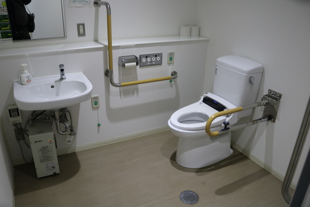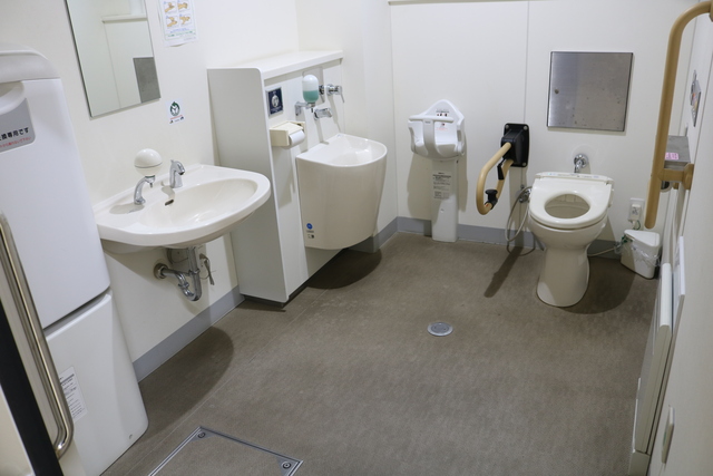 トイレは各フロアにあるのですが、バリアフリートイレは本館及び新館の1Fに設置されています 本館のバリアフリートイレにはベビーベッドやオストメイト流し(給湯あり)、子供ホルダーや踏み台が設置されているのですが、新館のバリアフリートイレにはベビーベッドやオストメイト対応設備等は設置されていませんでした なお、使用器具は本館がTOTO、新館と成東保健福祉センターがLIXIL(INAX)の器具メインで使用しています 参考URL:https://www.city.sammu.lg.jp/ |