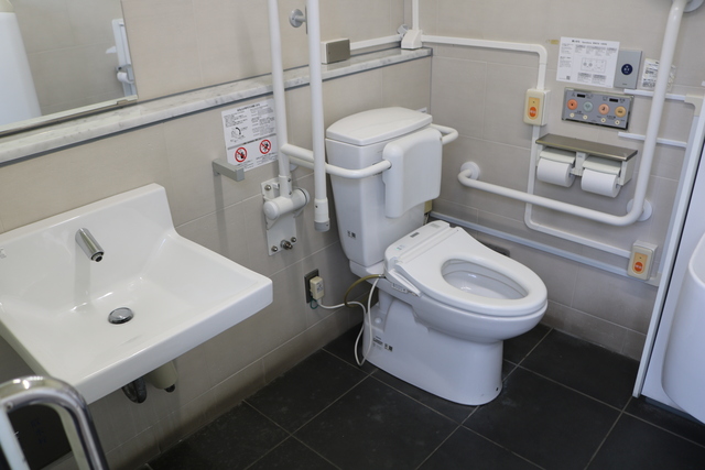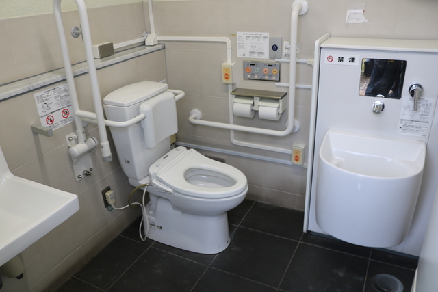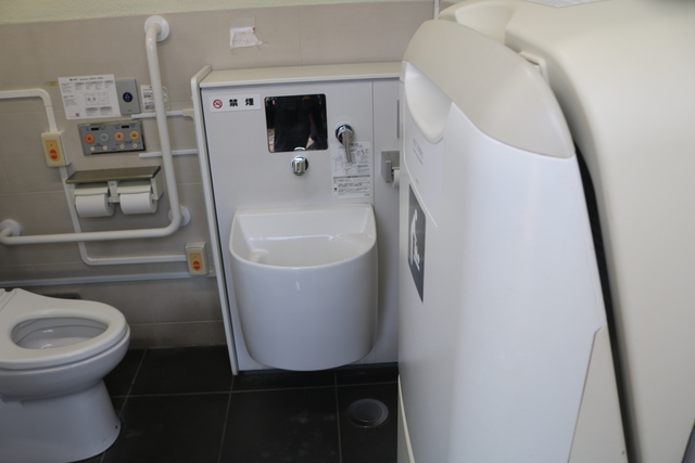 トイレは改札内外の双方から入れるようになっており、改札内側は古いままとはいえバリアフリートイレが後付けされたものの、他氏が取材済みのため割愛しますが、元からあった改札外側バリアフリートイレは一般用を含め再改修されたものの未取材だったようなので、私のほうで取り扱います 改札外バリアフリートイレにはベビーベッドやオストメイト流し(給湯あり)が設置されているのですが、改札内と比べ狭さは否めないと思います 改札内トイレ→https://wc.m47.jp/data-27361.html 参考URL:https://www.jreast.co.jp/estation/station/info.aspx?StationCd=1136 |