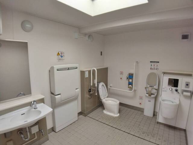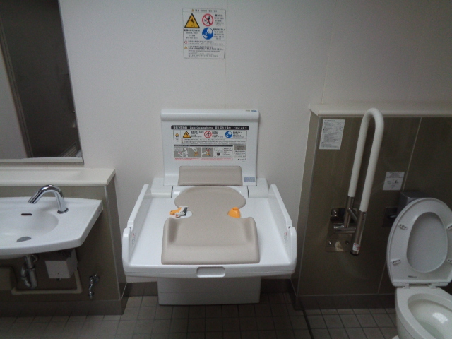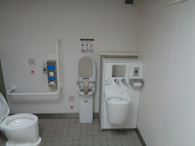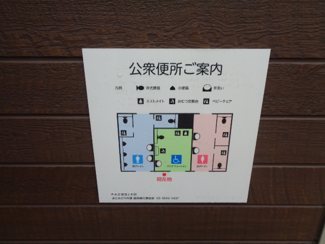 【ヒント】 ・新橋駅方面への東京BRTが発着するターミナルの一角にこの公衆トイレがあります。 ・ららテラスHARUMI FLAGの近くです。 ●男女共用1室のみの設置 ●ドアは手動 ●オストメイト対応汚物流し設置 ●ベビーシート設置 ●一般トイレ内にベビーチェア設置 【参考URL】 https://www.city.chuo.lg.jp/a0037/machizukuri/kouenryokka/kouen/kosyubenzyo.html |